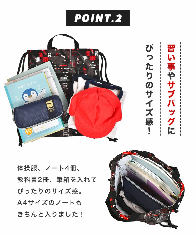 ■関連キーワードザック 塾 おけいこ バッグ 着替え袋 体操服袋 鞄 スクールバッグ 学校 着替え 教科書 ノート おけいこ 算盤 そろばん ピアノ ネームタグ 内側 名前 書ける キルト 卒園 記念 お祝い バッグ バック かばん 鞄 bag スクールバッグ スクールバック 部活 クラブ 遠足 ピクニック 軽い 持ちやすい 丈夫 クール ロゴ ワンポイント ナップサック プーマ PUMA 体操服袋 巾着袋 体操着入れ リュックサック 大容量 キルティング スポーツ ブランド 黒 青 紺 赤 ブラック ネイビー ブルー レッド 軽量 新学期 一年生 日本製 防災 クツワ シューズバッグ 体操服入れ 習い事 学童かばん PM414 PM418 PM531 サブバッグ ナップザック 低学年 2026 新入学 5歳 6歳 7歳 8歳 9歳 10歳 小学 1年 2年 3年 4年 5年 6年 一年 二年 三年 四年 五年 六年 生 小学校 小学生 保育園 保育所 幼稚園 学校 入園 入学 準備 入園準備 入学準備 通園 通学 子ども 子供 こども キッズ ジュニア 男子 男の子 ボーイズ boy バースデー 誕生日 プレゼント プチ ミニ ギフト お祝い お返し 粗品 景品 クリスマス クリスマスプレゼント おしゃれ オシャレ お洒落 シンプル かっこいい カッコいい カッコイイ