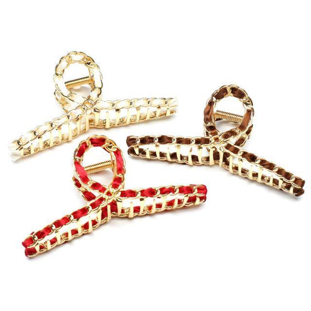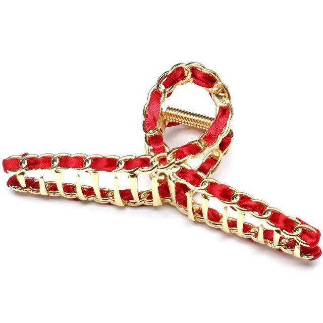 スタイル:Modern◆商品名:QinGoo大きめメタルバンスクリップクロスヘアクリップステンレス髪留めクリップかみどめへあくりっぷ強力大人ヘアアクセサリーレディース1本,11.5cm,赤い