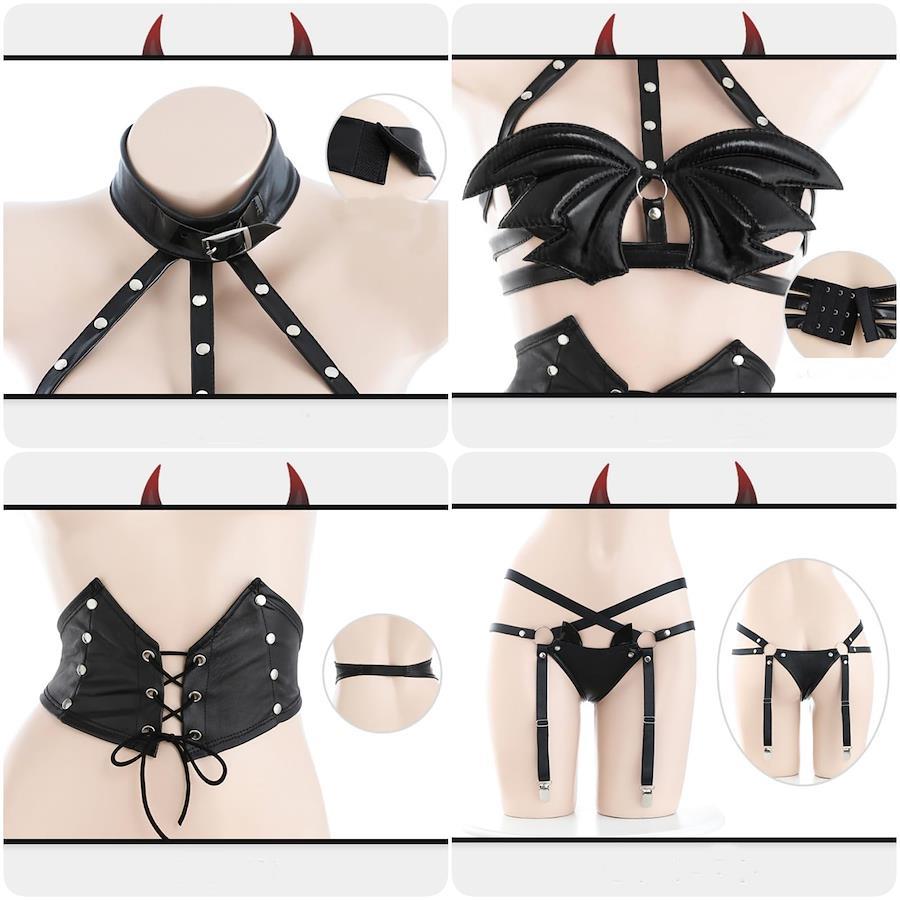 梱包サイズ?:?28.3x21.7x4.2cm;160gでの取り扱い開始日?:?2023/12/22メーカー?:?虹色セレクションASIN?:?B0CQM68FVZ製造元リファレンス?:?R2124売れ筋ランキング:ドラッグストア-150,791位(ドラッグストアの売れ筋ランキングを見る)アダルト用コスチューム-1,673位内に秘められた小悪魔を解放しちゃう! 過激さ爆発のサキュバスコスチューム。こうもりデザインのランジェリーに、デビルカチューシャ、ガーターベルトのサキュパスコスプレセット。セクシーなランジェリーとエナメルの輝きが、エロティックな雰囲気を演出。編み上げのベルト、チョーカー、ガーターなど、拘束感を感じさせるボンデージ風の衣装だから、SM風にプレイするのもいいかも。100%SM風デザインではなく、エロ可愛さも取り入れたデザインなので、ツンデレ小悪魔プレイもオススメです。ハロウィンナイトの仮装やクリスマスなどにも大活躍。刺激的なコスプレナイトを。。。【セット内容】カチューシャ、チョーカー付きブラジャー、ウエストベルト、ガーター ※ストッキングやその他アイテムは付属いたしません。 【カラー】ブラック 【サイズ】フリーサイズ: S-XL相当 (バスト: 76-100cm、ウエスト: 64-90cm 【メイン素材】ポリエステル(#lf)(#lf)(#lf)商品購入前に、ストア紹介ページをご確認ください。