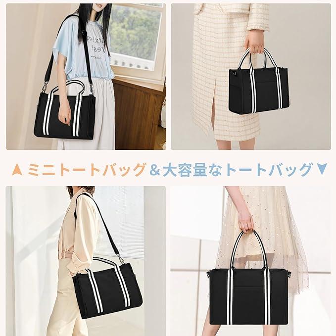 【2way仕様】:手持ちと斜めかけの2wayの使い方ができます。キャンバス生地を採用したダブルーハンドルは縫製を強化した、高い耐久性があります。なお、調節可能なショルダーベルトを付属しており、両手が空いてない時にクロスボディバッグとして使用できます。