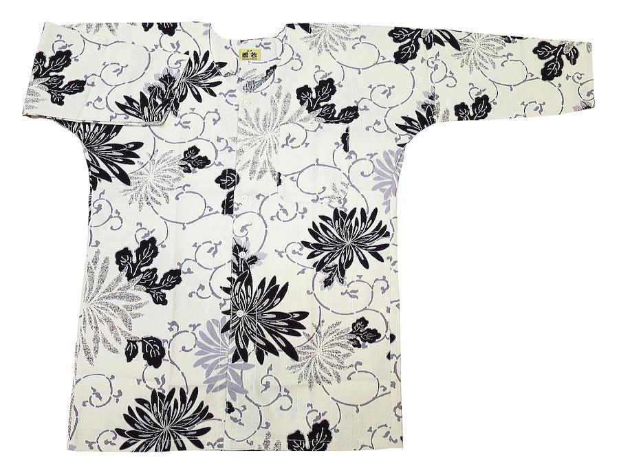 乱菊と唐草(白黒)特大サイズ(LL) 大人鯉口シャツ単品