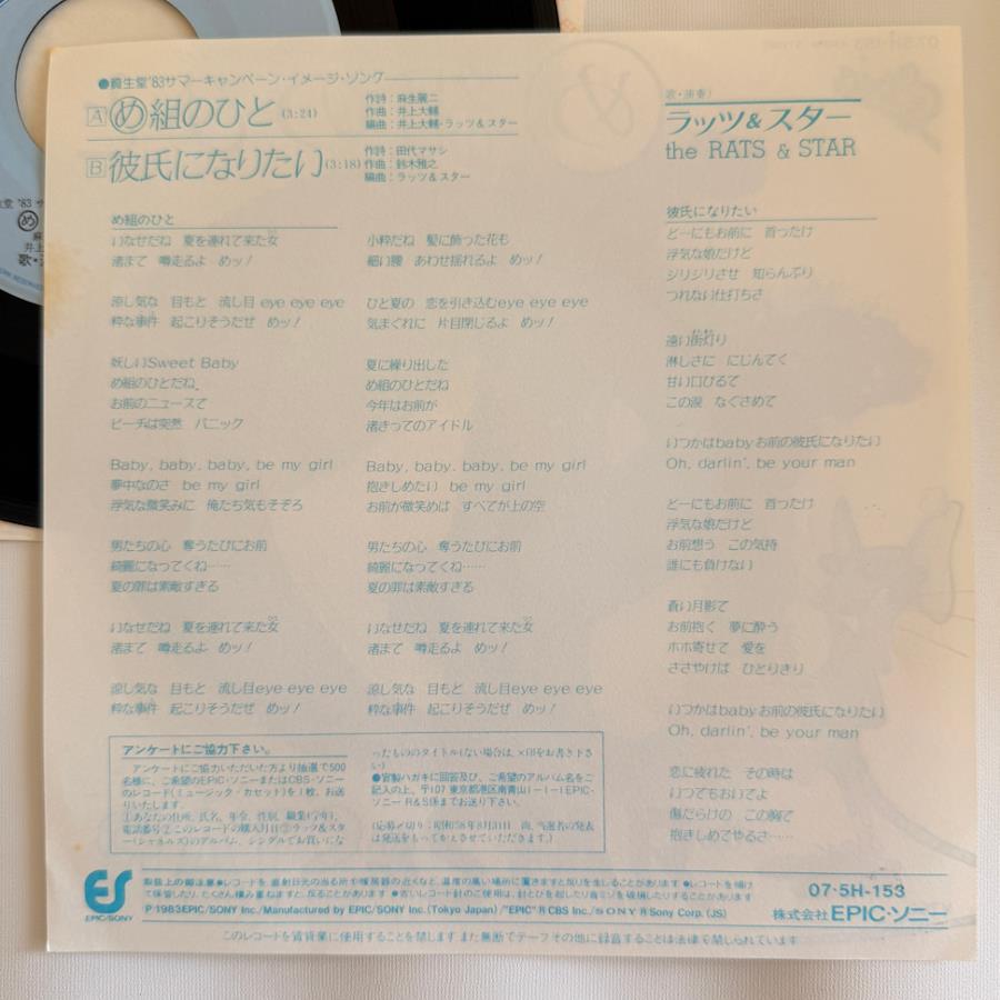 RATS&STAR Showa Era Vintage EP Record "Megumi no Hito Kareshi Ni Naritai" 7-inch Extended Play