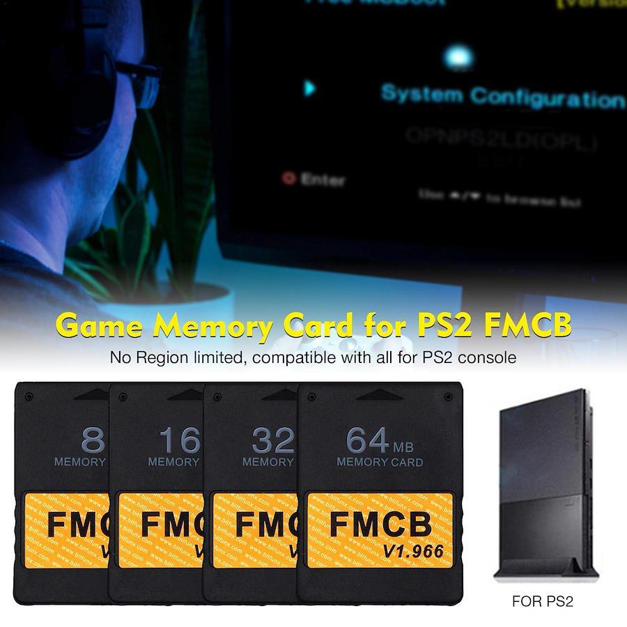 New MagicGate8MB / 16MB / 32MB / 64MB for McBoot Cards (FMCB) 8M, 16M, 32M, 64M memory capacity can be selected. Select what you need Supports use CHIPMOD on PS 2 console or without CHIPMOD No region restrictions, compatible with all PS 2 consoles. (Except for models SCPH-9XXXX equipped with v230 BIOS) Easy operation: no additional installation required. Just plug and play