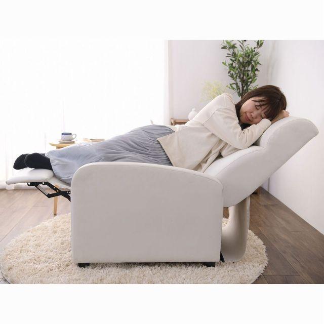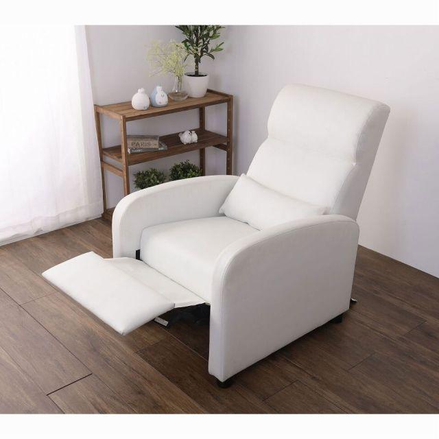 ◎ゆったりくつろげるフットレスト付きのソファ◎背もたれに体重を預けると背もたれが倒れ、フットレストが出現します。◎張地は手入れしやすい合成皮革で、見た目の高級感もあります。