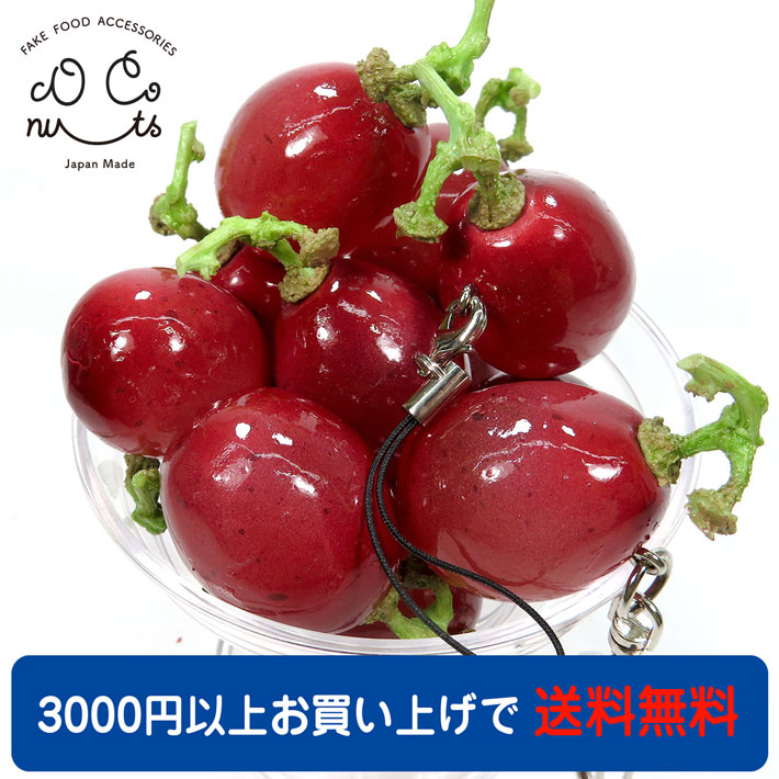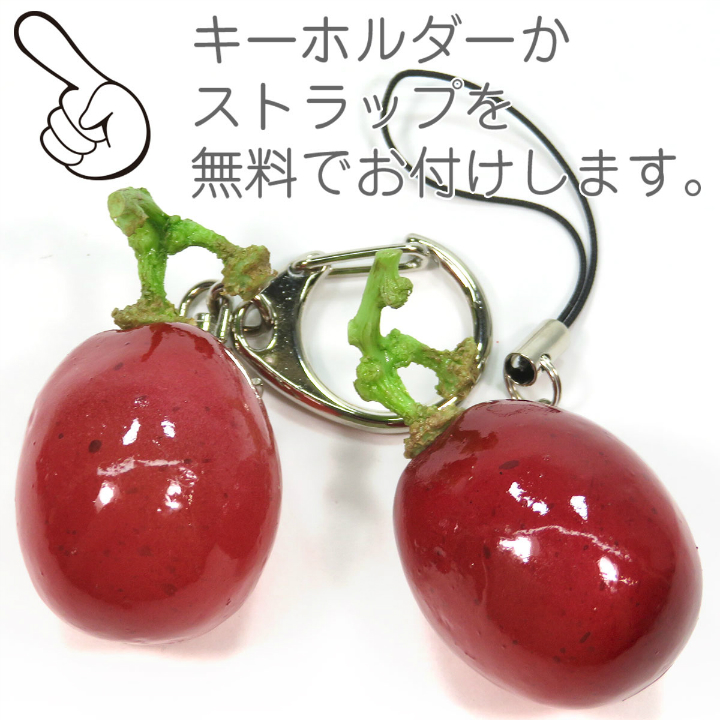 もぎたての赤ぶどうの食品サンプルアクセサリーです。大粒の赤ぶどう一粒にリアルな軸も付いています。