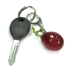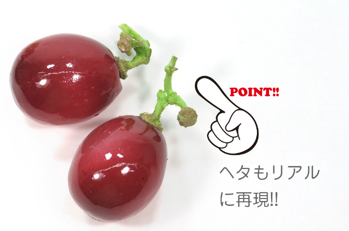 もぎたての赤ぶどうの食品サンプルアクセサリーです。大粒の赤ぶどう一粒にリアルな軸も付いています。