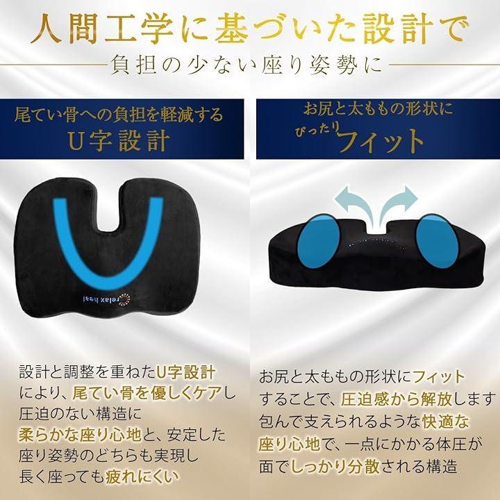 30秒ほどかけてお尻の形に合わせて沈み、均一的にフィットし圧力を分散させる低反発シートクッションです。