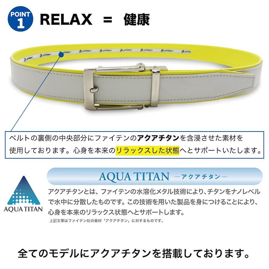 【リキみを解消】新作ファイテンゴルフベルト/アクアチタンを搭載したゴルフベルト。腰に付けることでリラックスしたスウィングをサポート。ジーパンなどカジュアル兼用のおしゃれなベルト。簡単装着バックルサイズ調整可能でプレンゼントにも最適。アクアチタン搭載!かっこいいシンプルなデザイン。秒で脱着できる簡単バックル!ウエスト120cm対応。父の日、敬老の日、誕生日などのプレゼントにも最適なベルトです。男女兼用当店一番人気!皆様のお陰でランキング1位獲得!シリーズ累計80,00本の販売のファイテンベルトに待望のゴルフベルトが登場!ベルト本体の裏面にファイテンの技術のアクアチタンを含浸したphitenテープを縫い付けてあり、装着するだけで人間本来のリラックス効果を生み、緊張緩和や精神バランスの調和、さまざまな不調改善など安定したパフォーマンス発揮をサポートいたします。ゴルフの時はリラックスした快適なゴルフウィングを!さらに常時ご着用いただくことでより効果を発揮しますので、普段から身につけて頂きやすいデザインで尚且つ高品質にこだわった商品にいたしました。また秒で脱着できる新構造の簡単オートロックバックルを採用しており、締める緩めるの微調整も簡単。ストッパー部分は樹脂で穴からベルトが傷んでくることもありません。ウエストサイズ最大約120cmまで対応したロングサイズでカットして短くすることも可能です。差し色の効いたおしゃれなデザインで男女兼用していただけます。シューズやパンツに合わせてお選びください。当店オリジナルの唯一無二の機能ベルトです。。