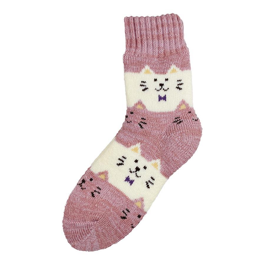 桑メリヤス Rentoutoa 段々猫柄 極厚パイル レディースソックス 23-25cm ピンク 303718-4