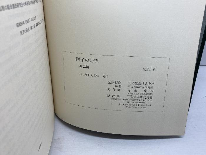 商品名:附子の研究 第二篇 出版科学総合研究所編 三和生薬株式会社