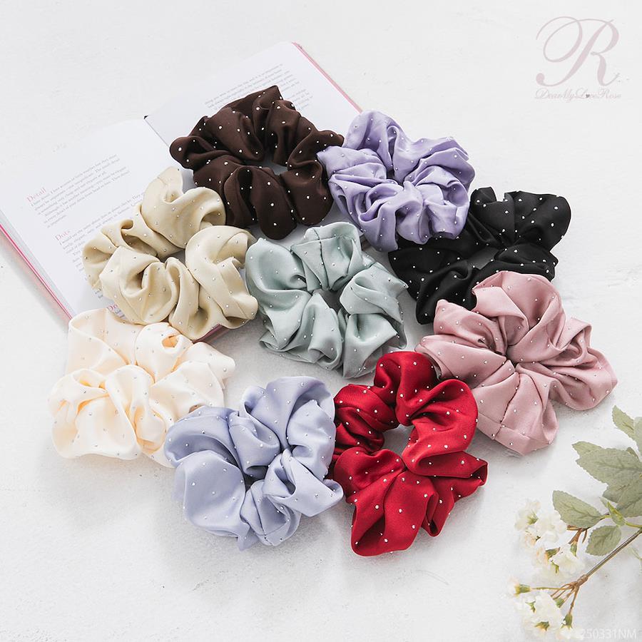 動くたびにきらきら煌めくラインストーンが可愛いサテンシュシュ。