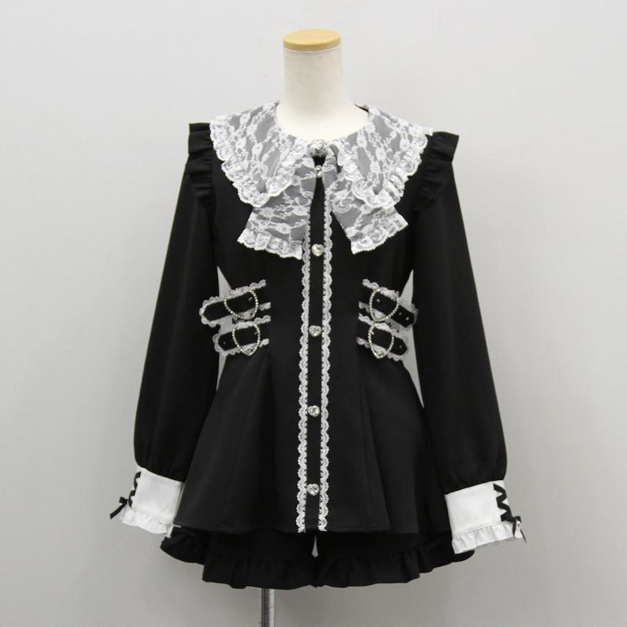 袖口カフスにはレースアップリボンがあり、デザインポイントたっぷりのセットアップです。