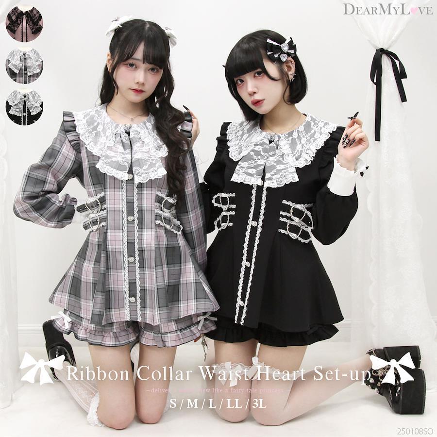 レース重ねがかわいいリボン襟デザインのセットアップです♪