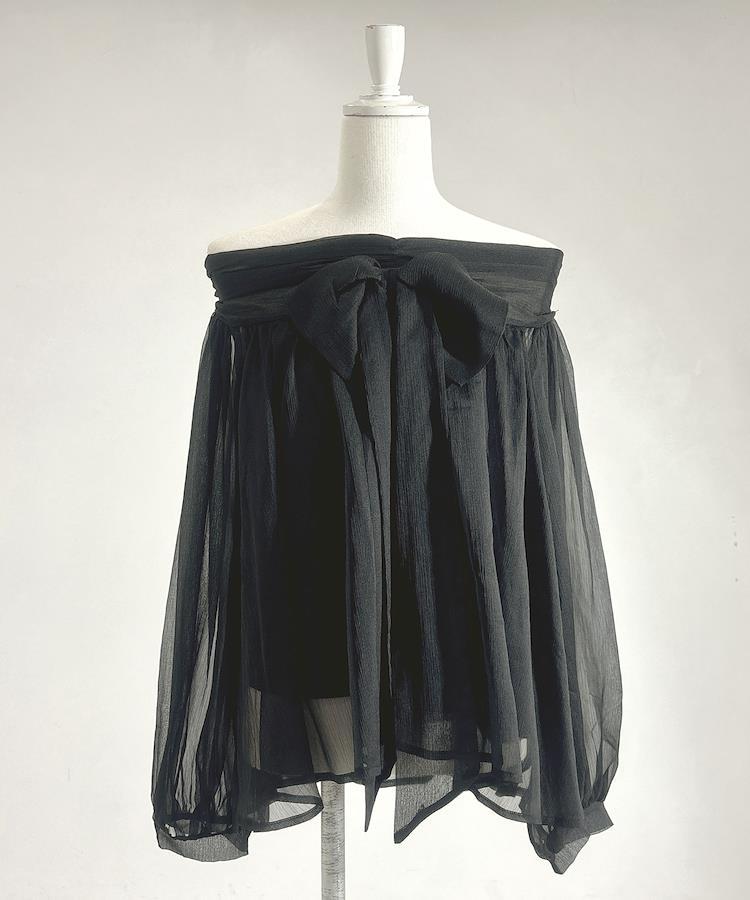 オフショルダーのデザインが特徴的で、肩を大胆に出すことで女性らしさを強調。