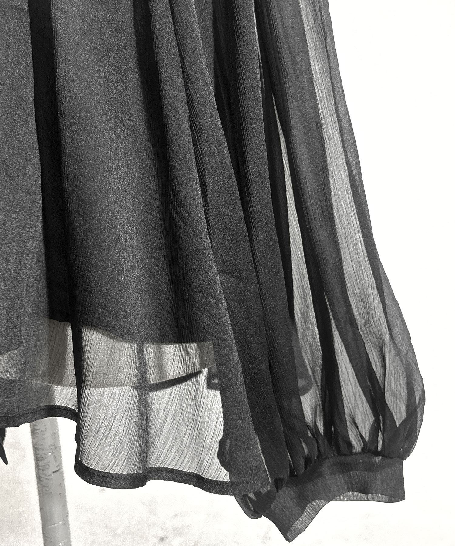 袖や身頃がふんわりとしたボリューム感のあるシルエットになっているため、華やかさとエレガントさを兼ね備えています。