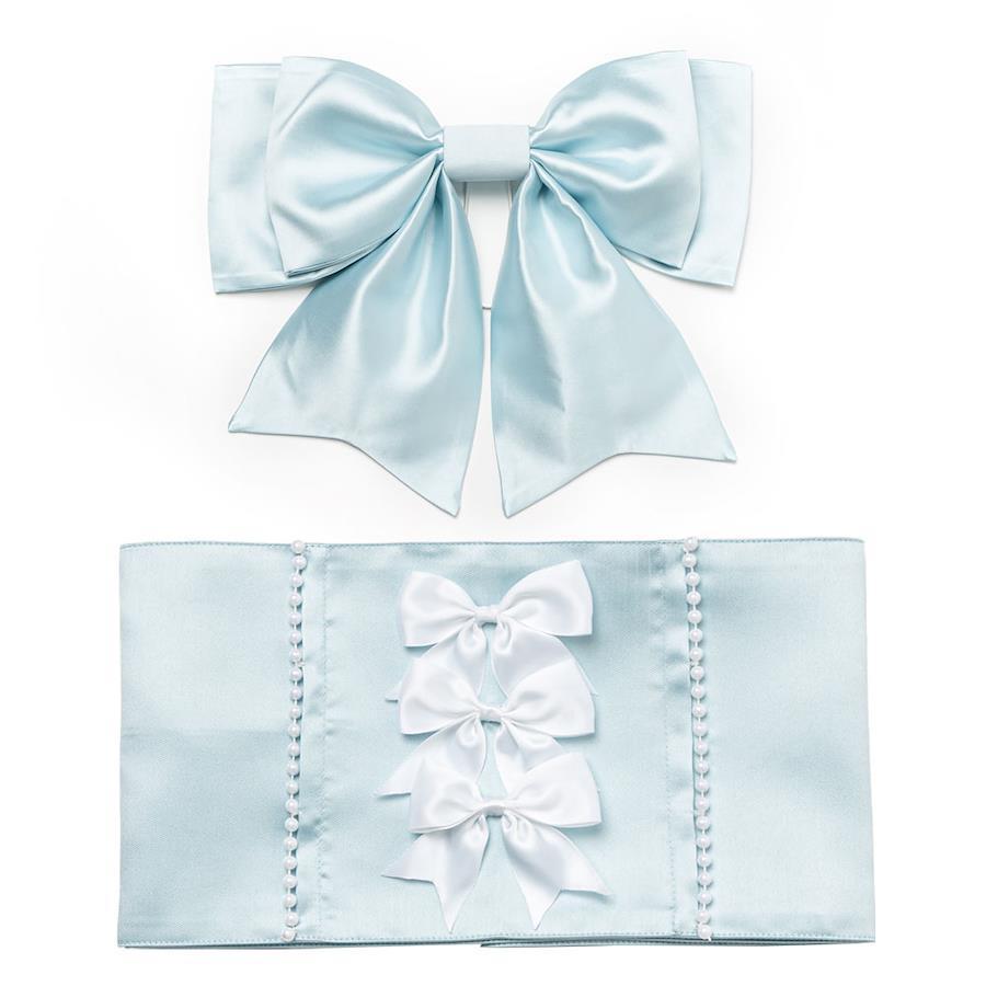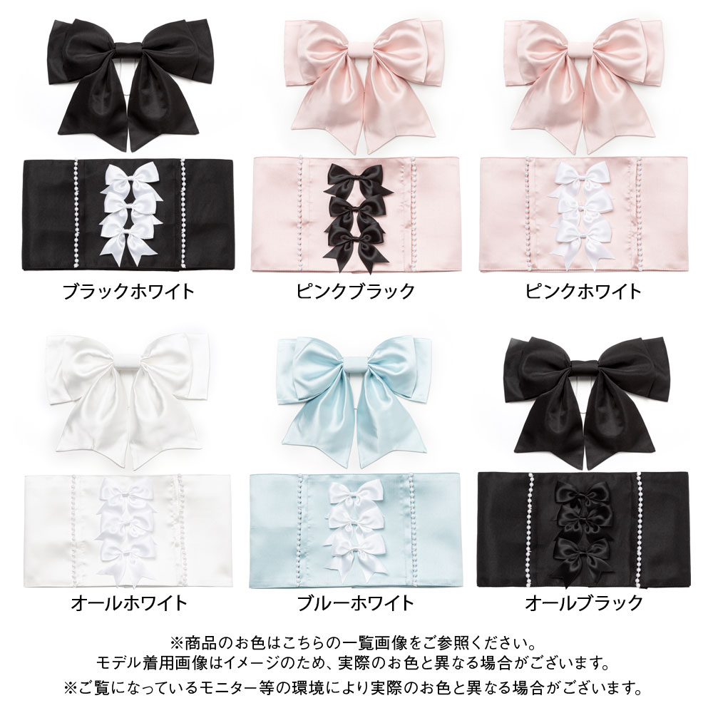 【デザイン】フロントのリボン3つがかわいすぎるデザイン帯。パールテープも使用し、上品で存在感のあるアイテムです。背中の作りリボンも大きめのダブルリボンで、プレゼントのリボンみたいに可愛いです。
