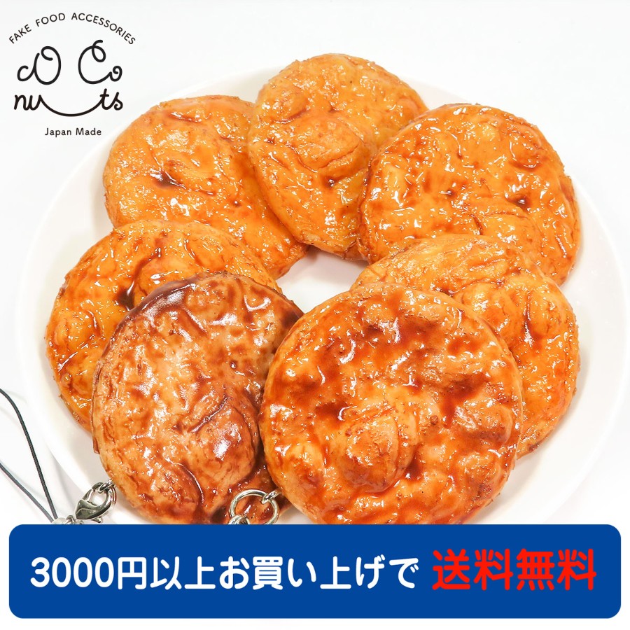 醤油をたっぷり塗って焼いたせんべいの食品サンプルアクセサリーです。裏側もちゃんと作りました。