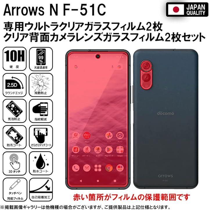 「対応機種及び仕様」arrows N F-51C docomo クリアガラスフィルム2枚+クリアカメラレンズ保護ガラスフィルム2枚セット。