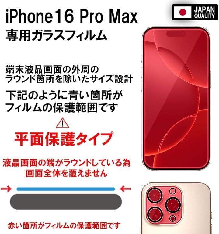 対応機種及び仕様iPhone 16 Pro Max ブルーライトカットガラスフィルム2枚+クリアカメラレンズ保護ガラスフィルム2枚セット。