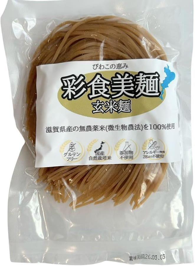 彩食美麺は、滋賀県産のお米から丁寧に作られた、グルテンフリーの半生米粉麺です。
