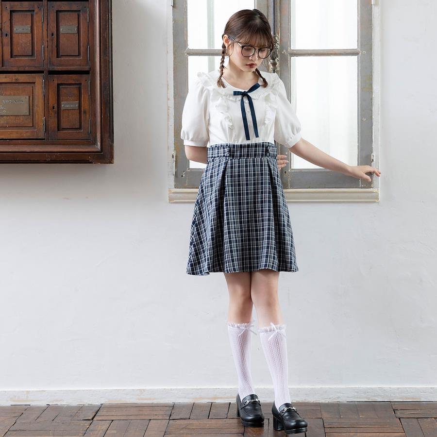 【コーディネート】この1枚で可愛くコーディネートが決まるので、シーンに合わせてお好みでバッグや靴を選んでください◎どの色も白い靴下と相性抜群で、合わせるだけでガーリーさもアップするはず♪定番ストラップパンプスと合わせるのはもちろん、ボルドーとネイビーはスルールライクな雰囲気もあるのでローファー等を足元に合わせても可愛くておすすめ!写真映えも良くて可愛く盛れるので、推し活やテーマパークでも活躍すること間違いなし♪《透け感》カラーによってあり 《生地の厚さ》薄手 《裏地》あり 《伸縮性》なし《生産国》中国