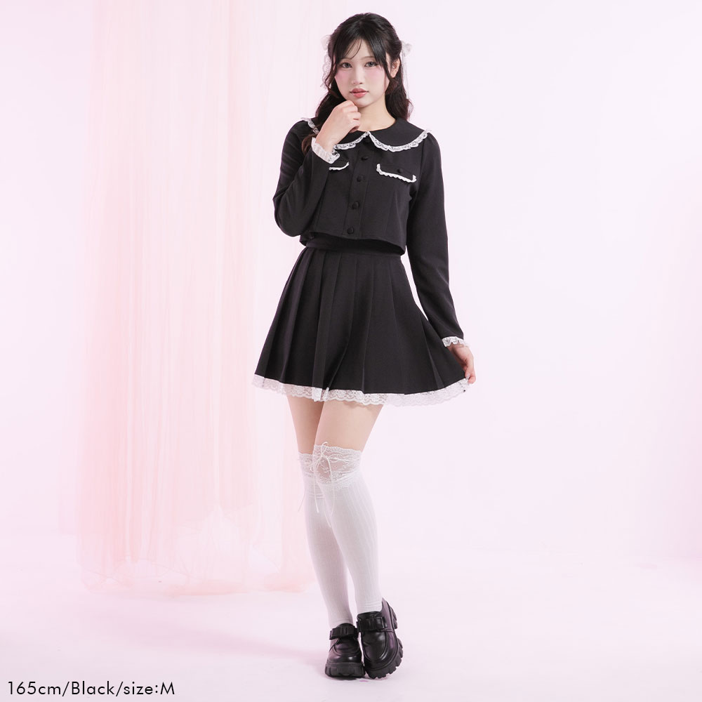 襟や袖口、胸ポケット、スカ―ト裾等レースをふんだんに使用しており、写真映え間違いなしのデザインに♪