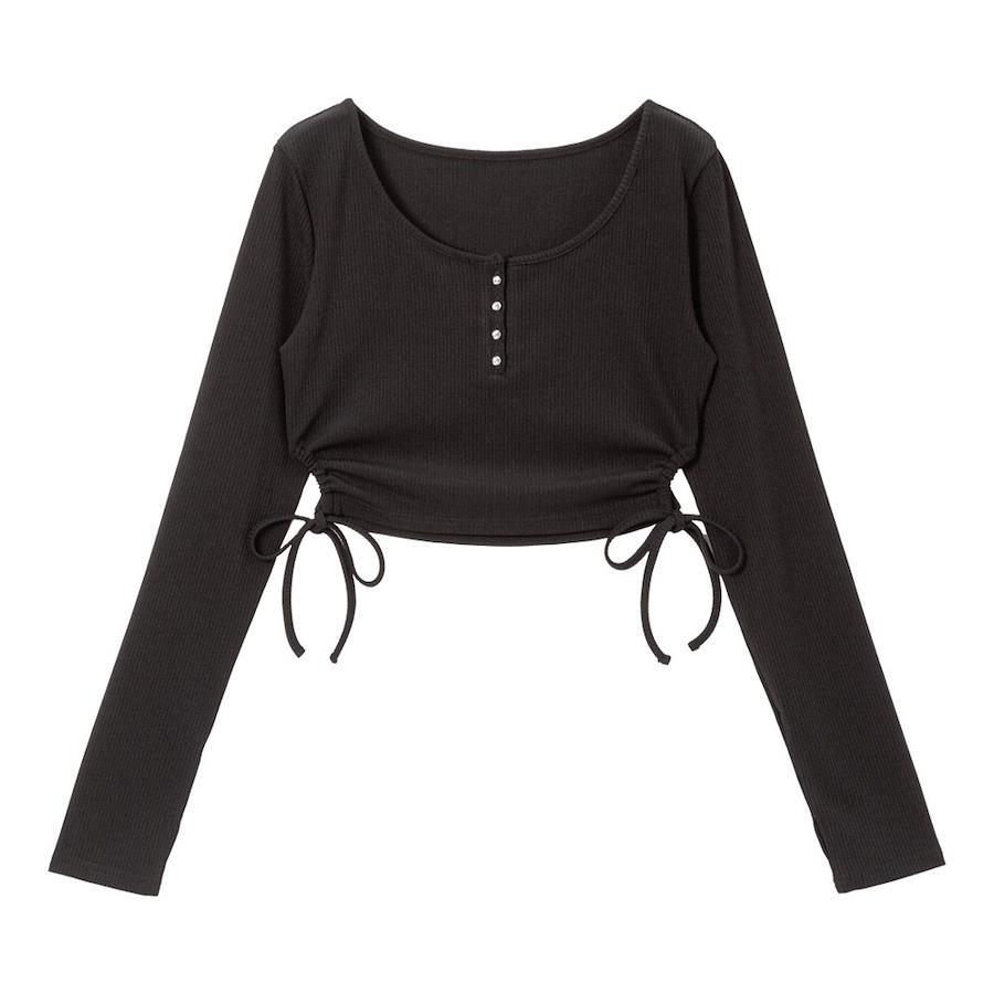 モードストリートコーデに欠かせないヘンリーネックカットソー【デザイン】トレンドのヘンリーネックをMillorらしくアップデート!さりげないビジュー釦とサムホールがクールなスタイルの中にもどこか色っぽい印象を与えてくれるアイテム。定番の人気カラーに加え、コーディネートのアクセントになるボーダーもご用意しました。クロップドのシルエットはボトムに合わせやすく、着るだけで今っぽいスタイルに。リボンの絞り具合で多少着丈の調節が可能となっています。【素材】伸縮性に優れた柔らかいカットソー素材です。《透け感》カラーによってあり 《生地の厚さ》普通 《裏地》なし 《伸縮性》あり《生産国》中国