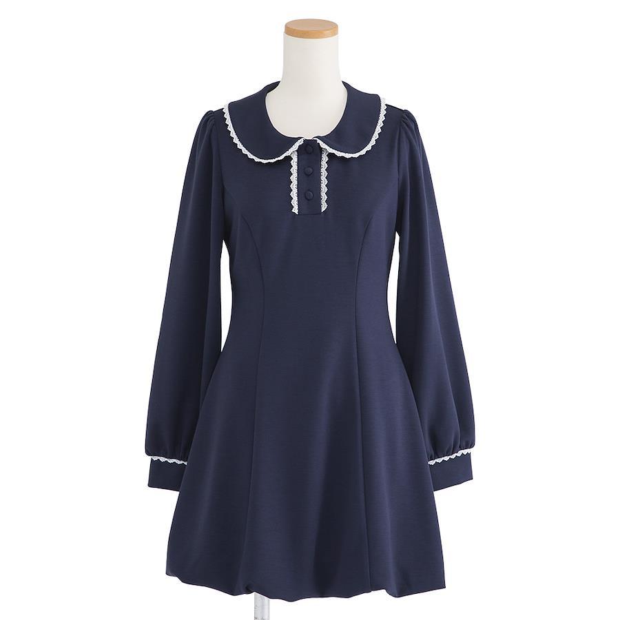 丸襟や前立て、袖口切替等、スカラップレースがアクセントに♪