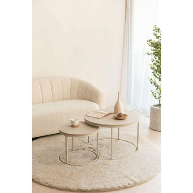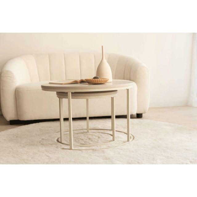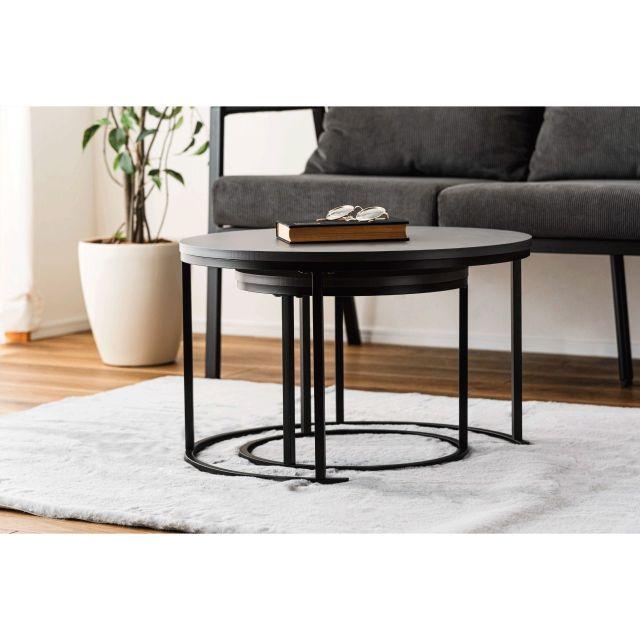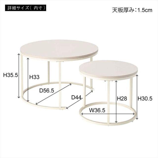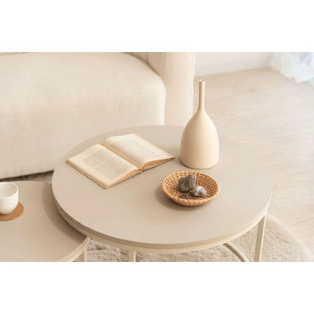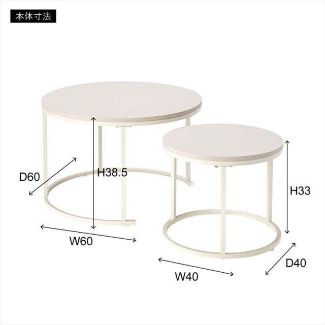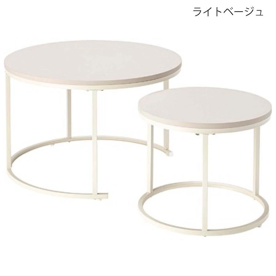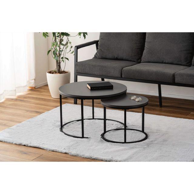 【空間に合わせて使う、ミニマルな機能美】すっきりとした細身のフレームに、マットな質感の天板を組み合わせたネストテーブルです。円形フォルムと、落ち着きのあるマットな天板が、空間にやさしい調和をもたらします。お部屋のスタイルや広さに合わせてレイアウトを変えられるネストテーブルは、2台を並べてゆったりとしたリビングテーブルとして使えるのはもちろん、重ねればコンパクトに収納でき、空間を広くすっきりと保つことができます。