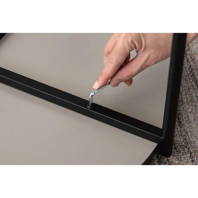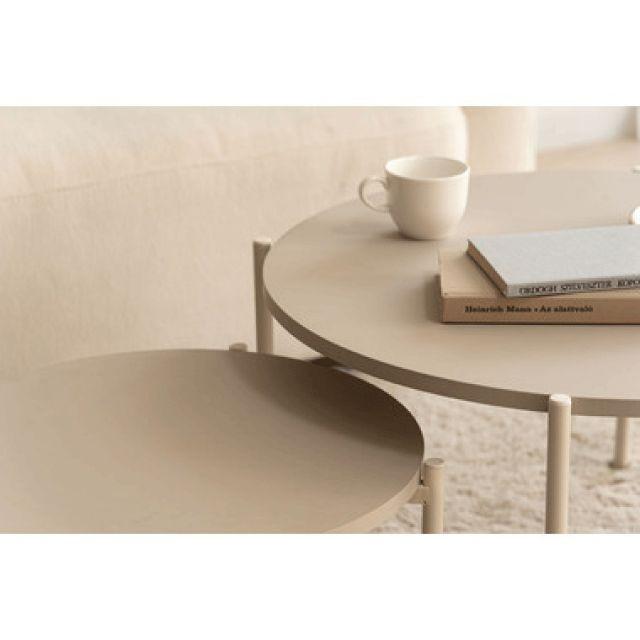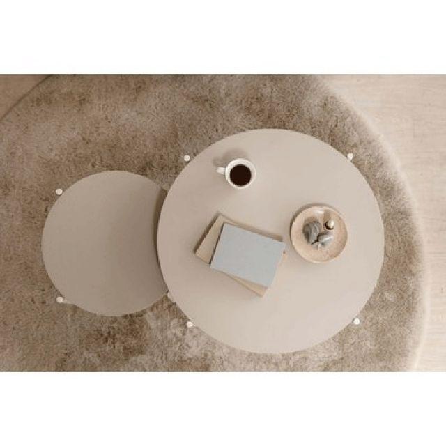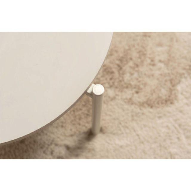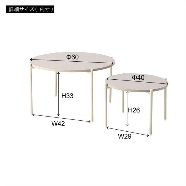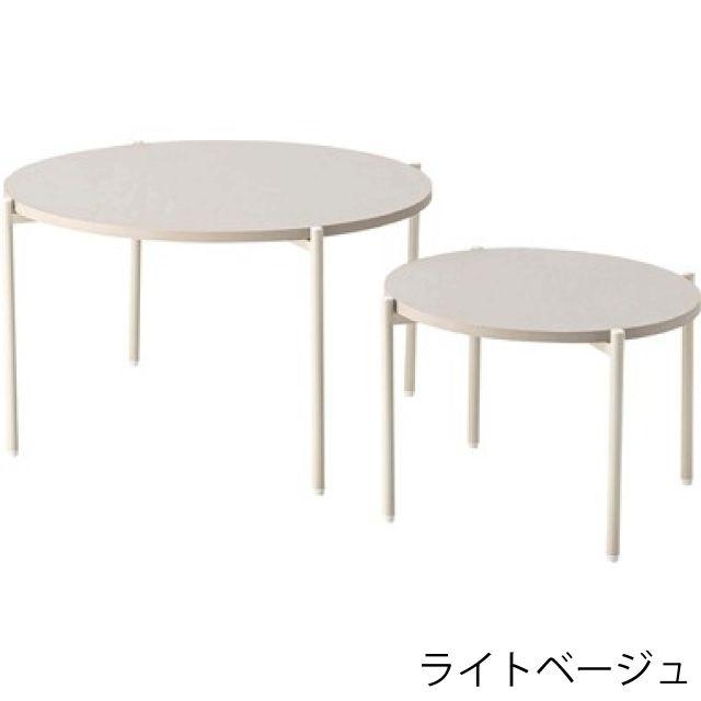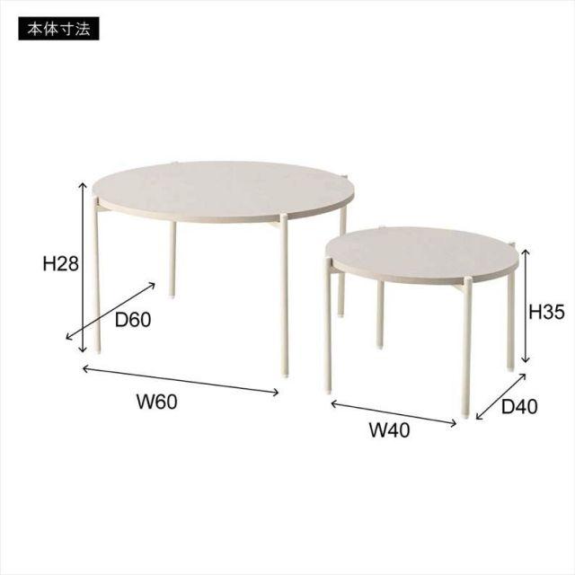 【空間になじむ、静かなデザイン】マットな質感の天板と、すっきりとしたフレームを組み合わせたラウンドテーブルシリーズ。主張を控えた佇まいなので、様々な空間になじみやすいデザインです。使用しない際には重ねて収納することでコンパクトに収まります。床置きやソファ横など、限られたスペースにも取り入れやすいサイズ感です。〈製品規格〉商品サイズ:S:W40×D40×H28cmL:W60×D60×H35cm重量:5.6kg静的耐荷重:10kg/台材質:合成樹脂化粧繊維板スチール(粉体塗装)機能:アジャスター付組立:要組立品生産国:中国