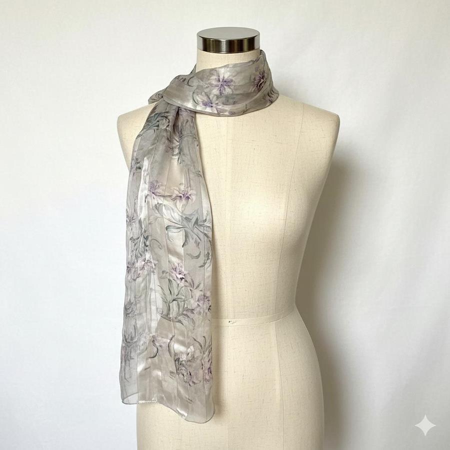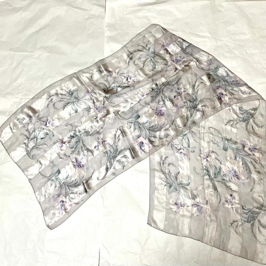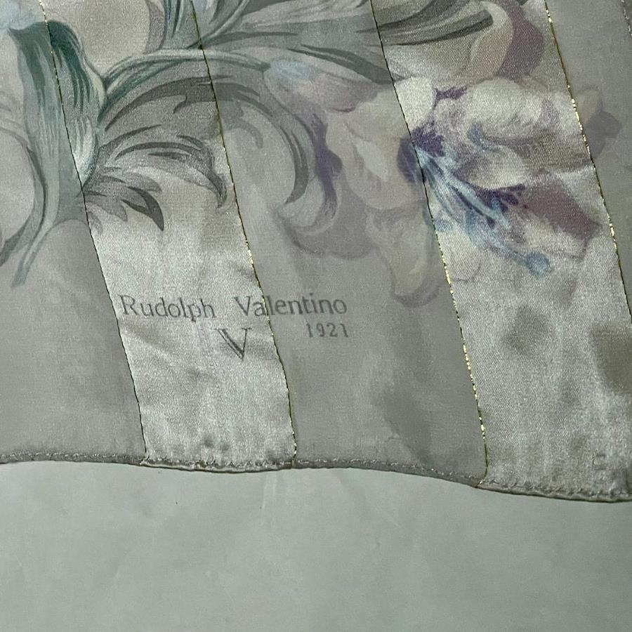 こちらはRudolph Valentino 絹100% シルク スカーフ シルバー 花柄になります。