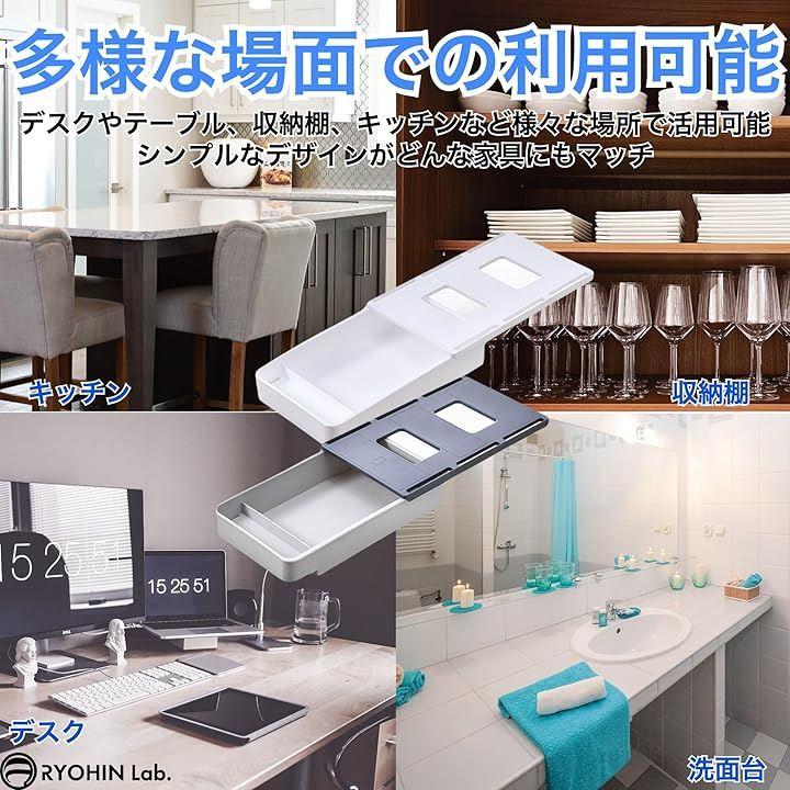 「多様な場面での利用可能」デスクやテーブル、収納棚、キッチンなど様々な場所で活用可能。