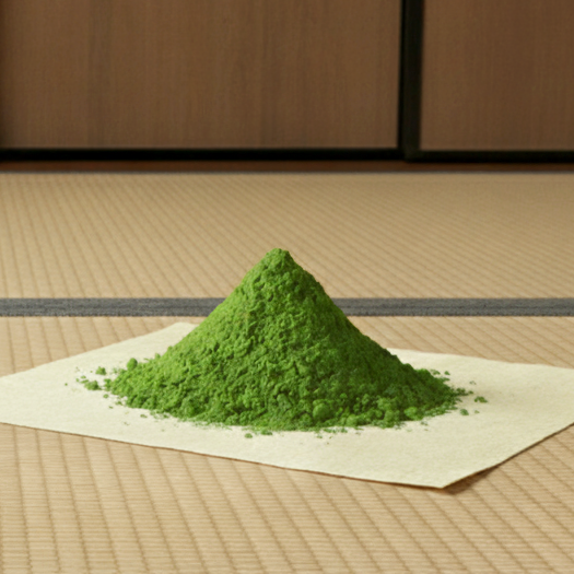 深く美しい緑色で、深いうま味としっかりとした甘みを持つ高級抹茶です。その深い味わいと余韻をお楽しみください。