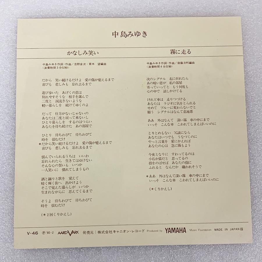 Sad Smile Running in the Fog March 1978 Nakajima Miyuki EP Record 7-inch Single Extended Play
