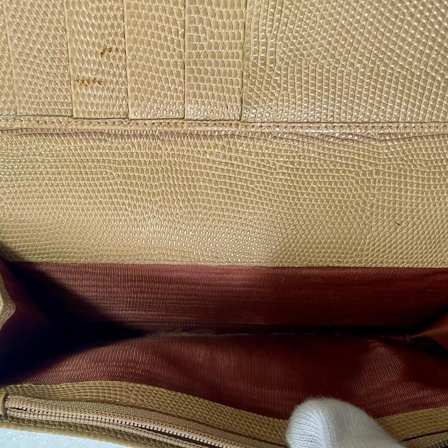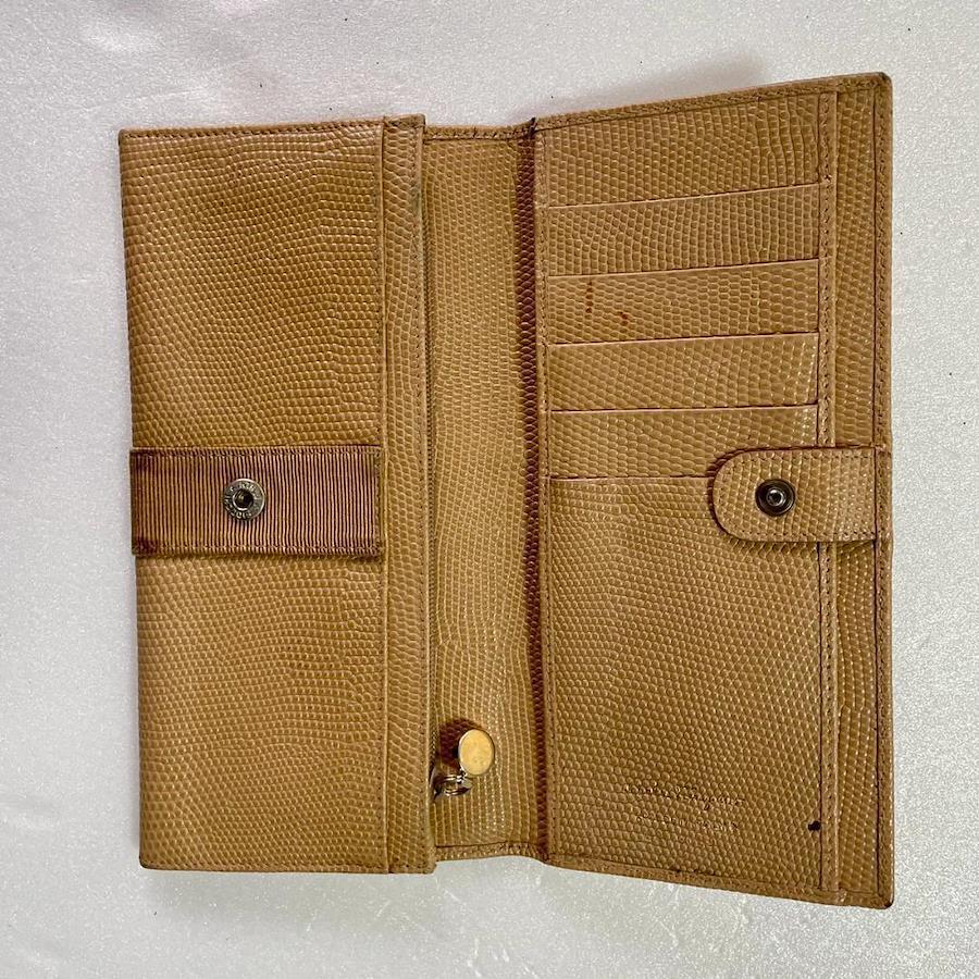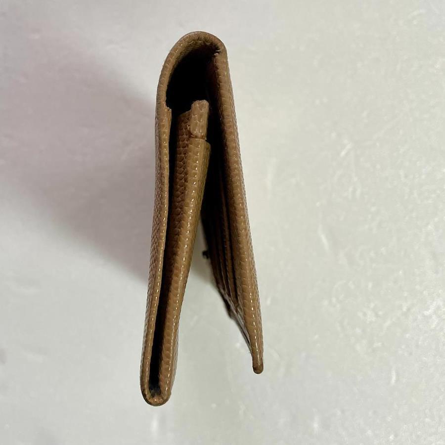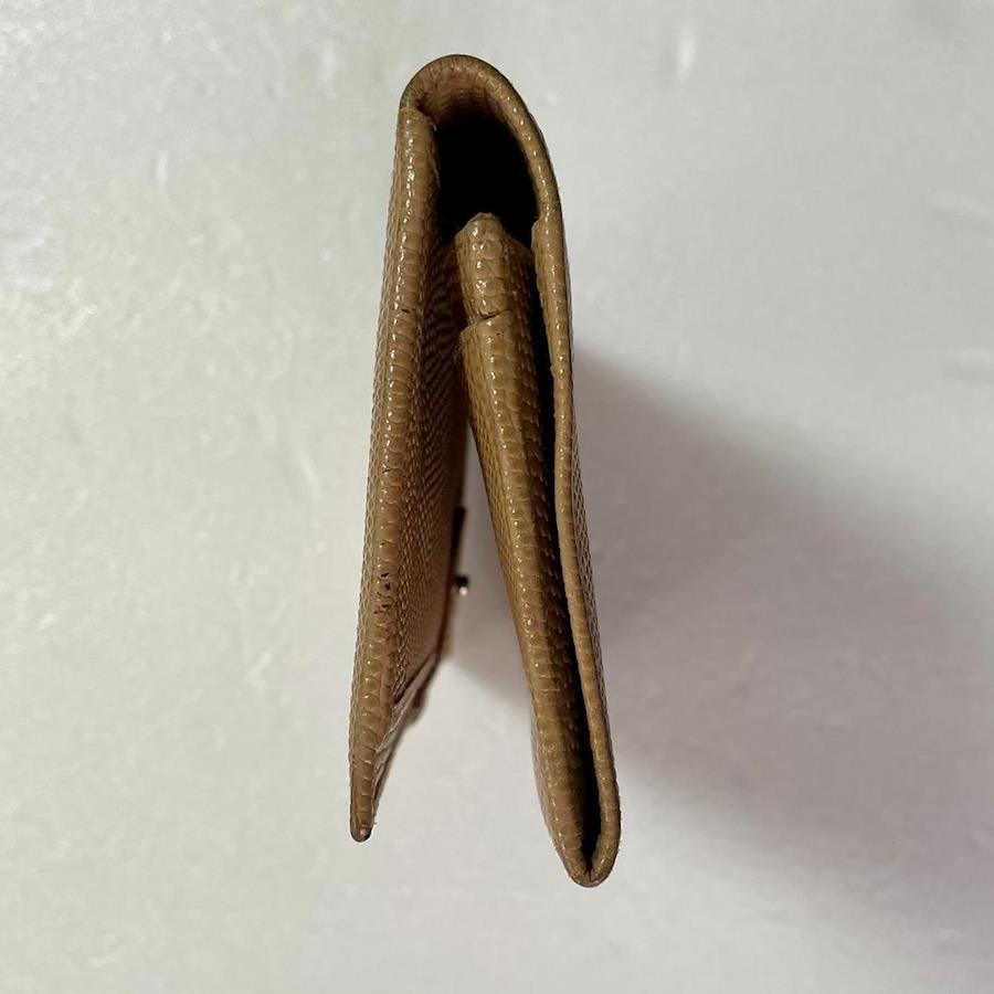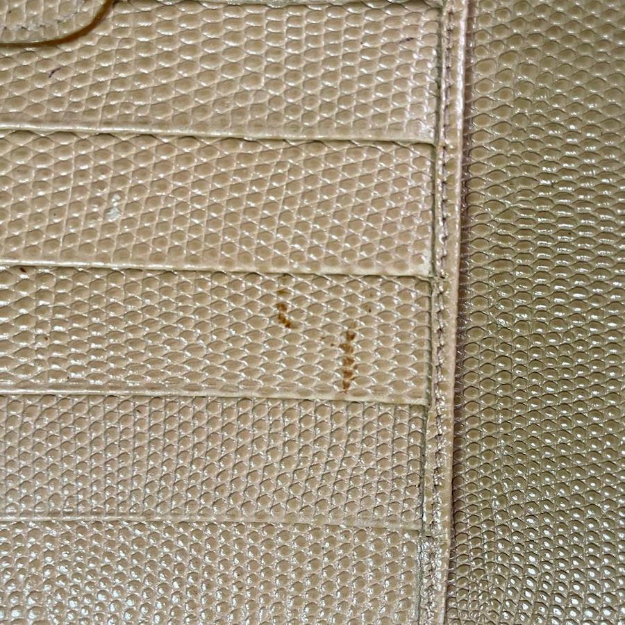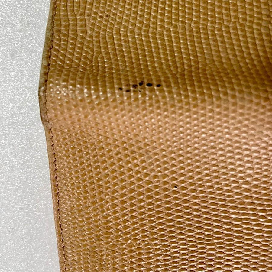 ☆こちらの商品はUSED品ですので新品や未使用品をお求めの方はご遠慮ください。合成皮革製のベージュ二つ折り財布、イタリア製。