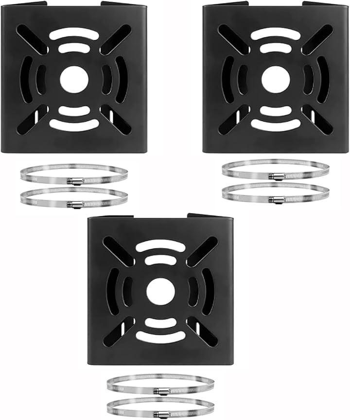 「商品詳細」セット数:ブラケット本体3個、ステンレスバンド6本の計3台分 素材:金属 サイズ:カメラ設置台座部 縦/約11.2cm 横/約11.5cm ステンレスバンドの幅/約1.2cm カラー:ブラック*モニターの環境により、色の見え方に若干差が生じる場合があります。