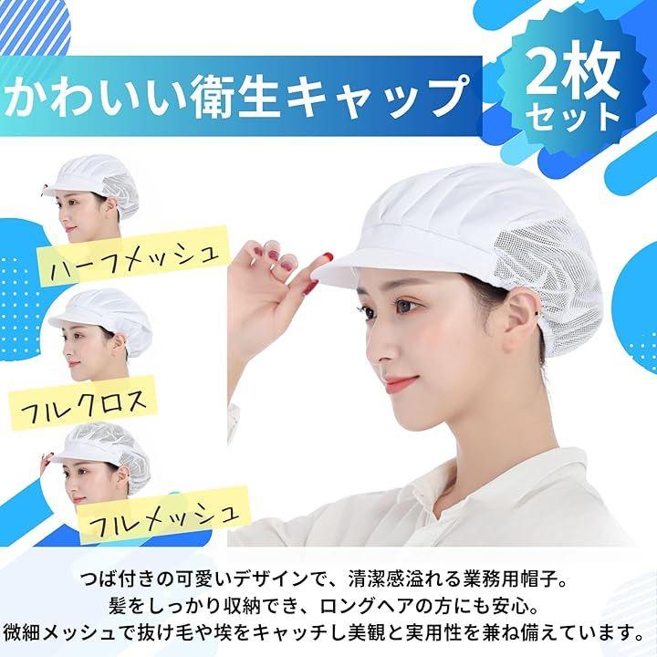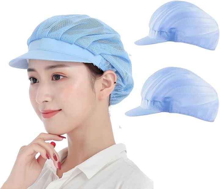 「かわいい衛生キャップ」つば付きの可愛いデザインで、清潔感溢れる業務用帽子。