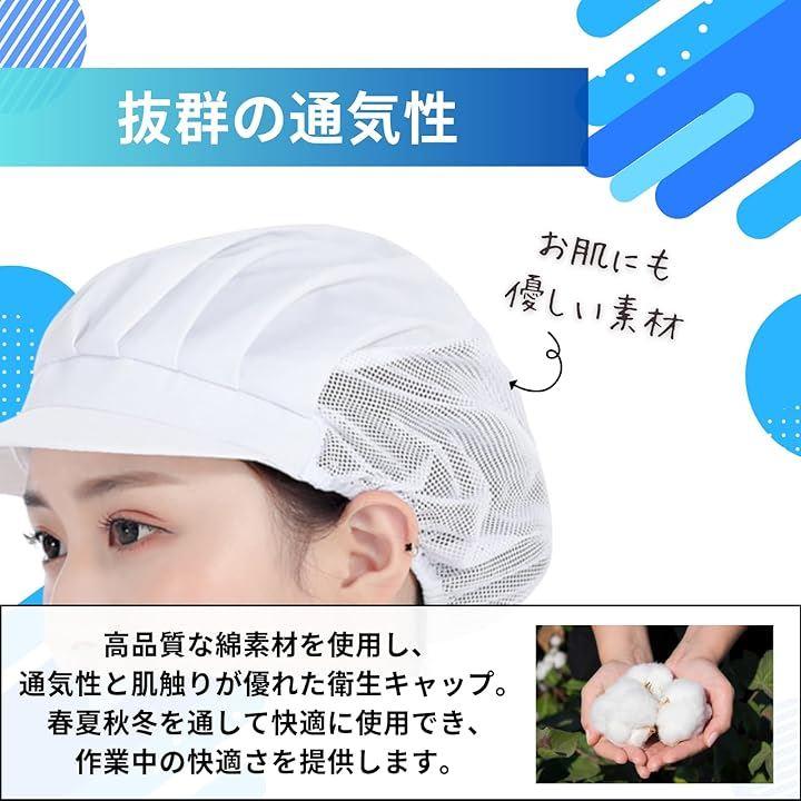 「抜群の通気性」高品質な綿素材を使用し、通気性と肌触りが優れた衛生キャップ。