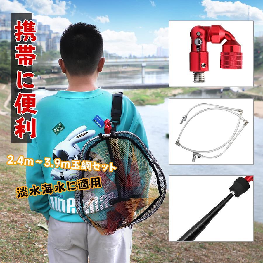 SANLIKE たも網 玉の柄 タモジョイント 3点セット 軽量 小継 伸縮 タモの柄 グラス繊維 小継玉の柄 玉網 タモ網 携帯便利 コンパクト ランディングネット 淡水海水適用 2.4M-3.9M