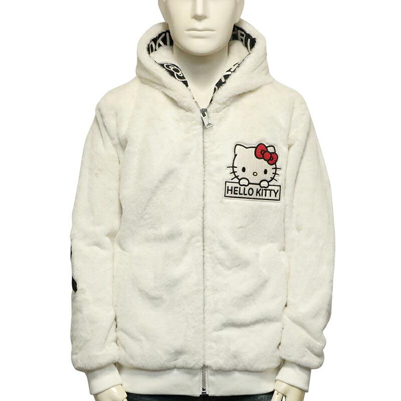 ZIPの内からフードにかけては、「HRLLO KITTY」ロゴの刺?テープでデザイン。