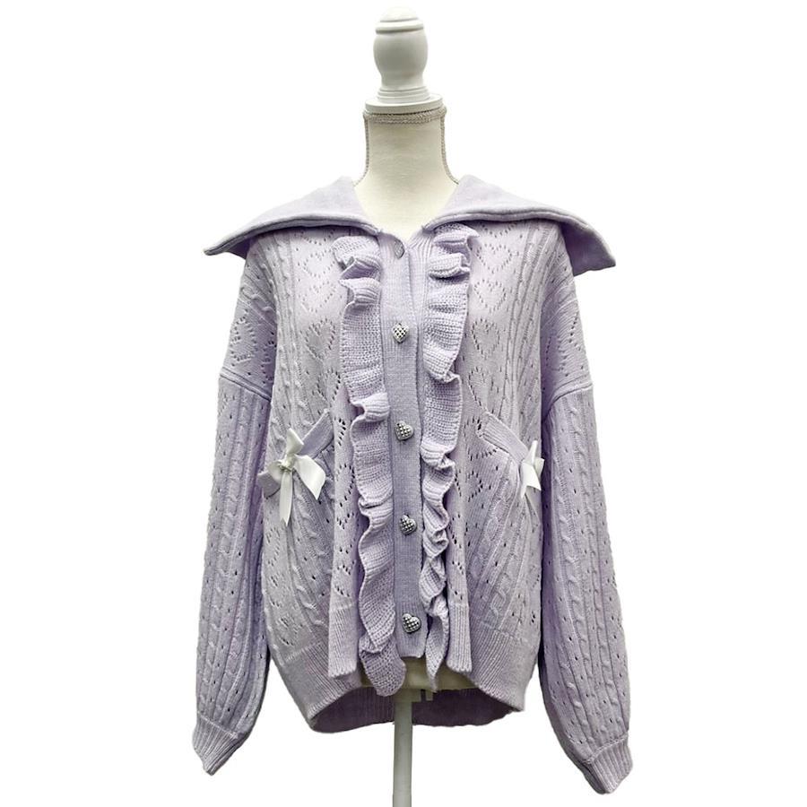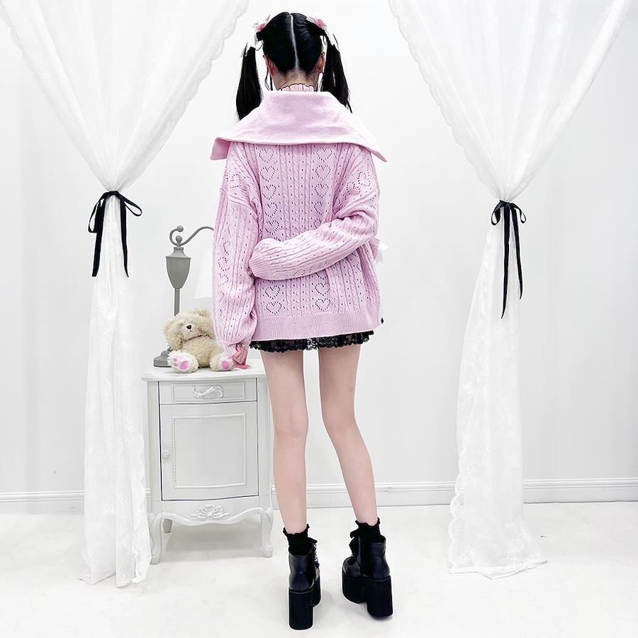 甘かわいいハートケーブルがポイントのセーラー襟カーディガンのご紹介