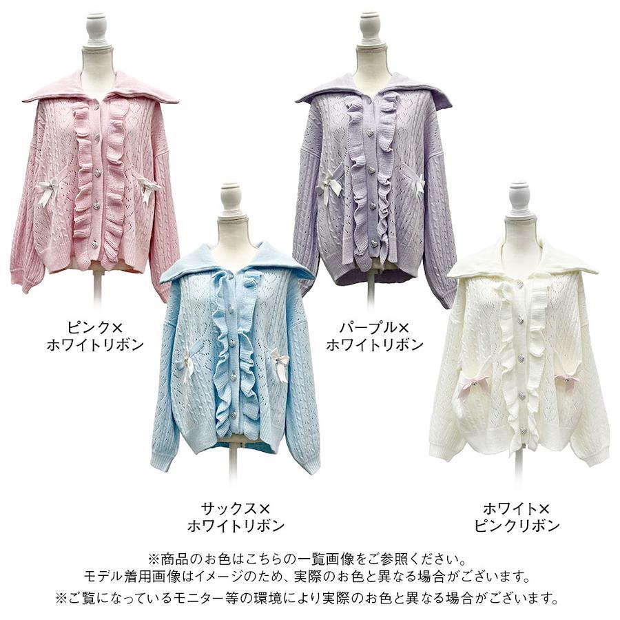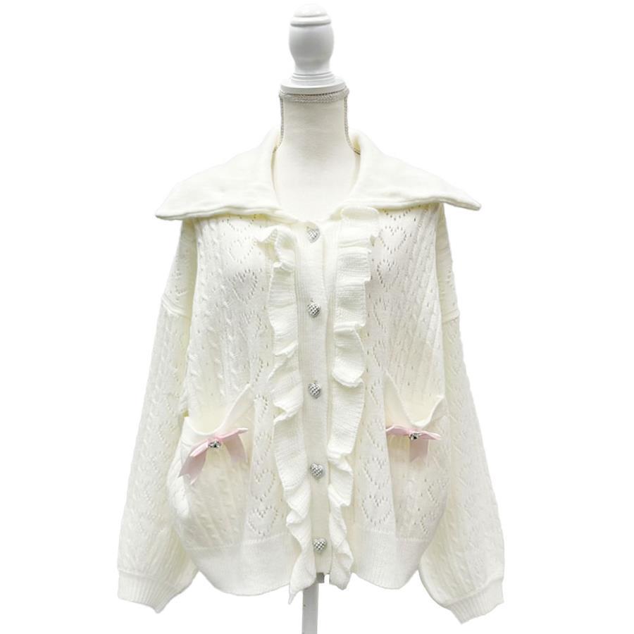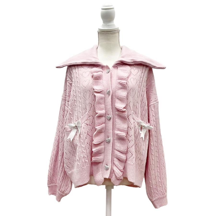 甘かわいいハートケーブルがポイントのセーラー襟カーディガンのご紹介