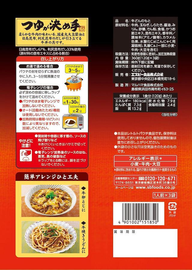 牛肉、玉ねぎ、しらたき、醤油、みりん、砂糖、でん粉、食塩、かつお節エキス、昆布エキス、香辛料/調味料(アミノ酸等)、カラメル色素、水酸化Ca(こんにゃく用凝固剤)、乳酸Ca、(一部に小麦・牛肉・大豆を含む)