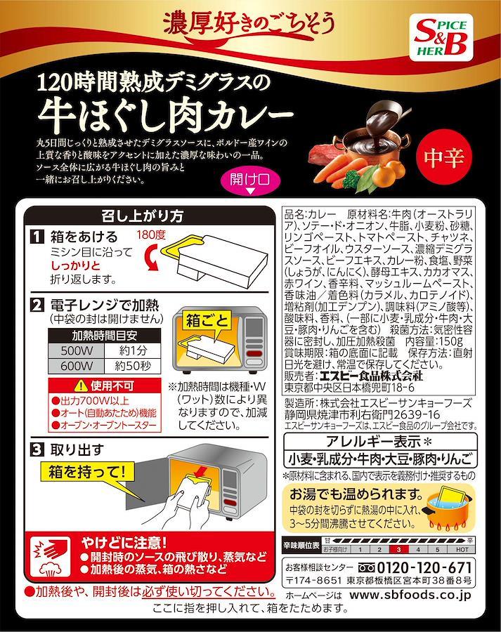 原材料:牛肉、ソテー・ド・オニオン、牛脂、小麦粉、リンゴペースト、ビーフオイル、トマトペースト、砂糖、ウスターソース、チャツネ、濃縮デミグラスソース、カレー粉、野菜(しょうが、にんにく)、食塩、ビーフエキス、酵母エキス、カカオマス、赤ワイン、香辛料、マッシュルームペースト、香味油/着色料(カラメル、カロテノイド)、増粘剤(加工デンプン)、調味料(アミノ酸等)、酸味料、香料、(一部に小麦・乳成分・牛肉・大豆・豚肉・りんごを含む)商品サイズ(高さx奥行x幅):16cm×3cm×13cmフレーバー: ビーフサイズ: 150グラム (x 6)【重要】メーカーによる商品リニューアルに伴いパッケージ(内容量も含む)変更が行われた場合、新パッケージでお届け致します事ご了承願います。