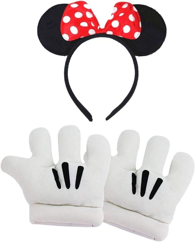 ■商品名[SCGEHA] マウス 耳 ミニー カチューシャ ヘッドバンド グローブ セット 仮装 コスプレ 小道具 黒・オレンジ風船2個セット