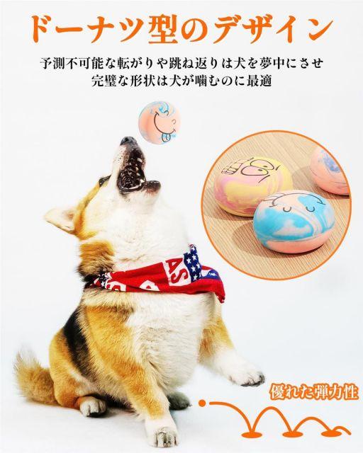 【噛む欲求を満たす・家具の損傷を防ぐ・小型犬に適用】今回ドーナツ型おもちゃについて、犬は家でひとりで遊ぶこともできます。飼い主と投げゲームをしている最中に、噛む欲求を満たすこととトレーニングができます。家具やスリッパなど他の人間が使うものを噛んことや破壊しことのを防ぐという追加の利点があります。子犬、小型犬に向きの超人気おもちゃです。犬の誤食や危険を防ぐため、12kg以下の犬が遊ぶことをお勧めします。与えたままの使用は破損や事故につながりますので、必ず飼い主が一緒に遊び、万一破損した場合はすぐに取り上げてください。