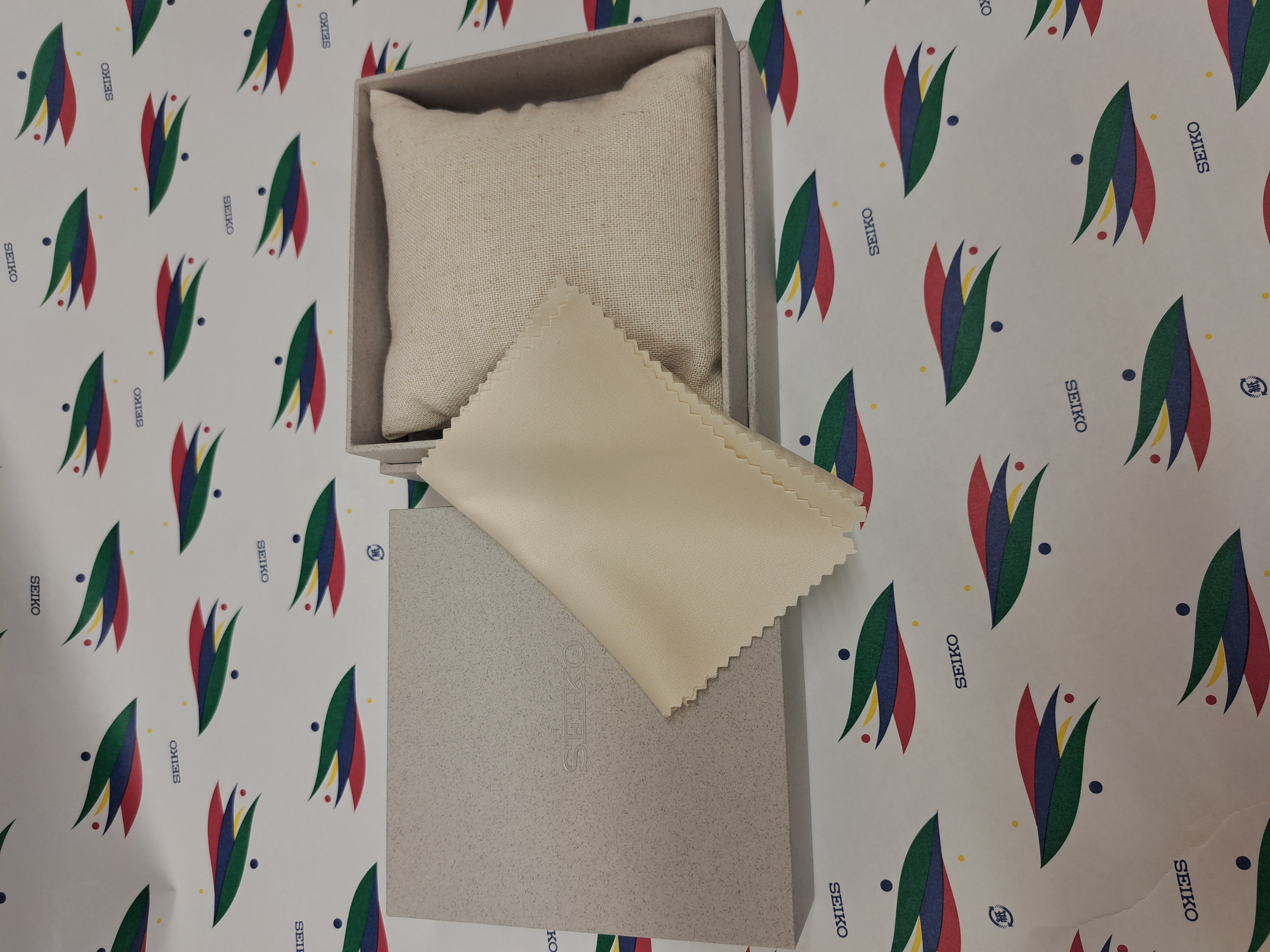 高級な作りのセイコー・腕時計専用ボックスです。・新品、未使用品・サイズ:115 × 118 × 83mm・外箱のサイズ:120 × 122 × 85mm・使用していますクッションは、布 (麻 再生ポリエステル). 綿(再生ポリエステル)布:再生ポリエステルクッション:紙