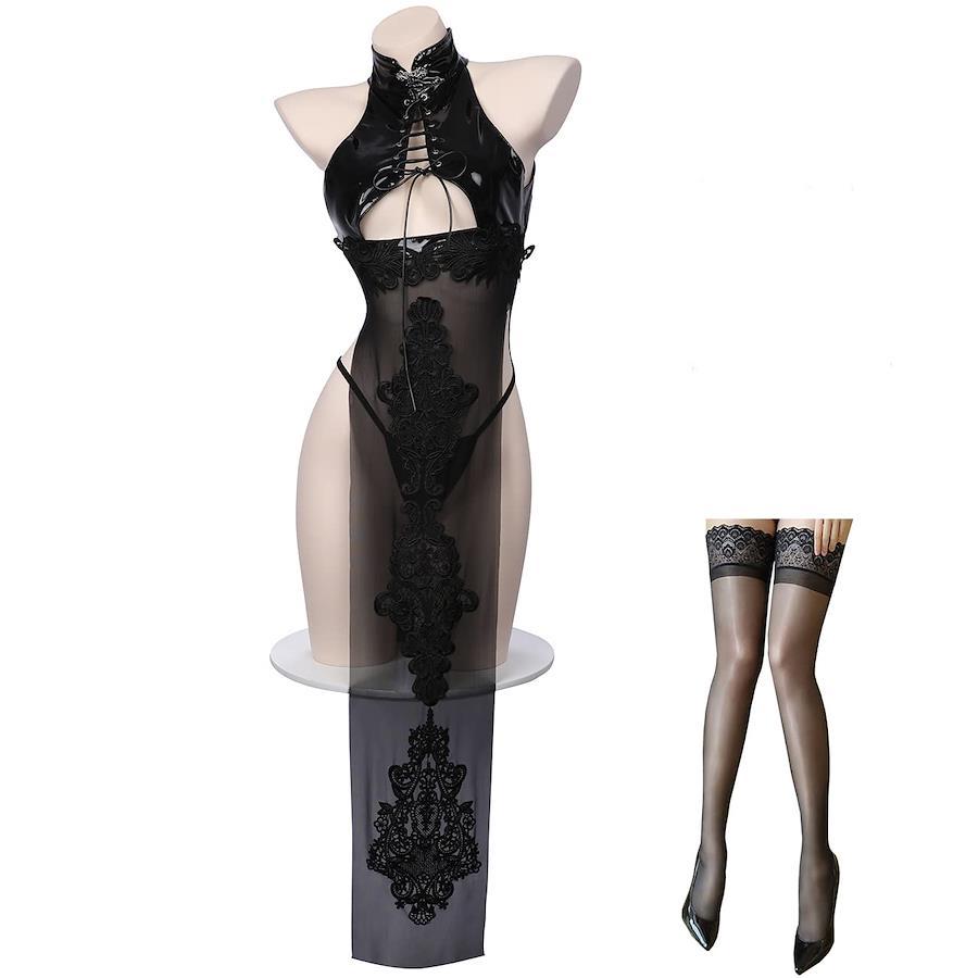 原産国 中国サイズ:ワンサイズ。150-180cm、62kg以内適当セット内容:スカート+Tバック+ストッキング3点セット 材質:97%ポリエステル繊維+3%スパンデックスレザー素材が高級感を漂わせレースアップのスリットが色気溢れるチャイナドレス風セクシーコスプレ。バスト部分にはカットを少し入れチャイナボタンからはバストが覗き、サイドのスリットは動けばよりボディラインが露になるセクシーさがポイントのチャイナドレス風のコスプレです。(#lf)(#lf)(#lf)商品購入前に、ストア紹介ページをご確認ください。