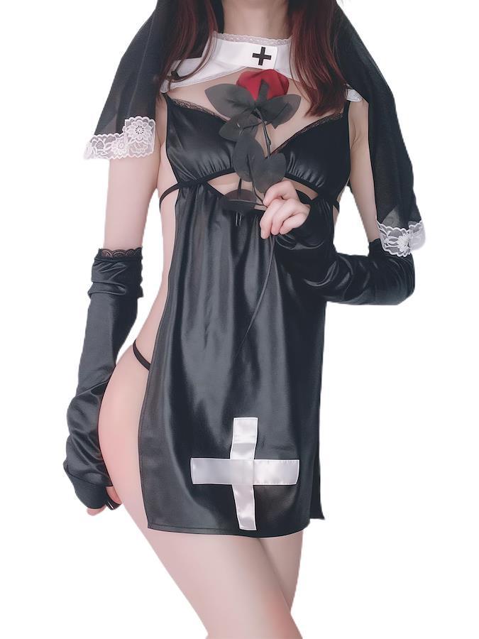 [SENMHS] セクシー 修道女コスプレ メイド服 可愛い ベビードール ランジェリー コスプレ修道女 聖女 牧師 宣教師 シスター コスプレ 修道服 教会 聖歌隊 コスチューム コスプレ レディース 女性用 (1001)