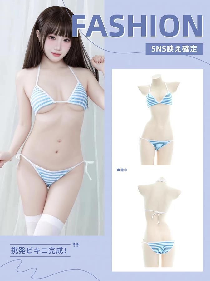 【ブルーストライプ×美ボディ映え】爽やかなブルーのストライプが肌を明るく魅せ、ビーチでも写真映え抜群?【セクシー三角ブラ&紐Tバック風】美胸を演出する三角ブラ+腰回りが映える紐仕様で、抜群のセクシー感!【エロかわグラビア風デザイン】小胸女子にも◎ 盛れるカットとバランス感でグラビア気分に♪【撮影・コスプレ・ナイトプールにも】水着だけじゃない!コス衣装やイベント用にも大活躍!【ワンサイズで楽ちんフィット】調整紐付きだから体型に合わせてフィット感UP、誰でも可愛く着こなせる♪(#lf)(#lf)(#lf)商品購入前に、ストア紹介ページをご確認ください。